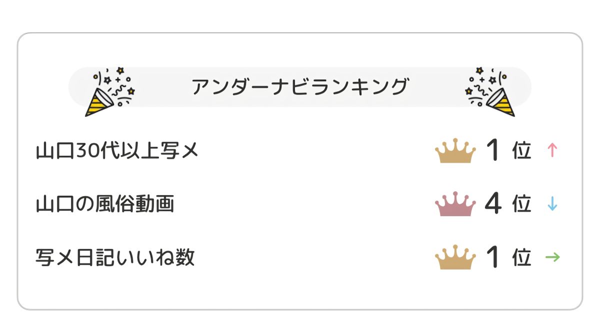 ( ☆∀☆)きゃーー!!!嬉しいです💙本日のランキング👑 2026/03/29 00:30:42 女の子とお店をフォローします いいね! 🫧本日のランキング🫧 本日出勤も短いながらランキングありがとうございます🥹💙めちゃくちゃ嬉しいです💙✨南のリピーター様になってもらえたらもっと嬉しいです🍀今月もあと少し💕ご指名お待ちしています🫧南ゆい 女の子とお店をフォローします いいね!