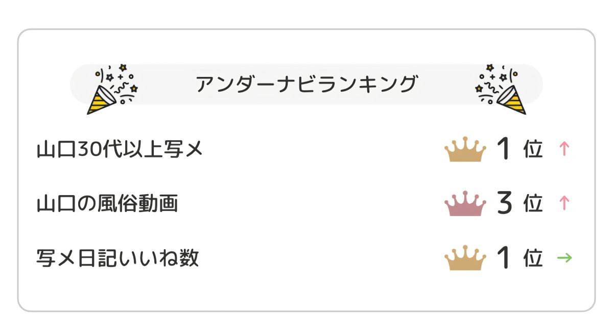 🫧本日のランキング🫧 2026/03/30 04:29:27 女の子とお店をフォローします いいね! 🫧本日のランキング🫧 月末もランキングに載れてて幸せ😃💕終わりまでこのままでいたいな…✨#いつも応援ありがとうございます#南を推してね南ゆい 女の子とお店をフォローします いいね!